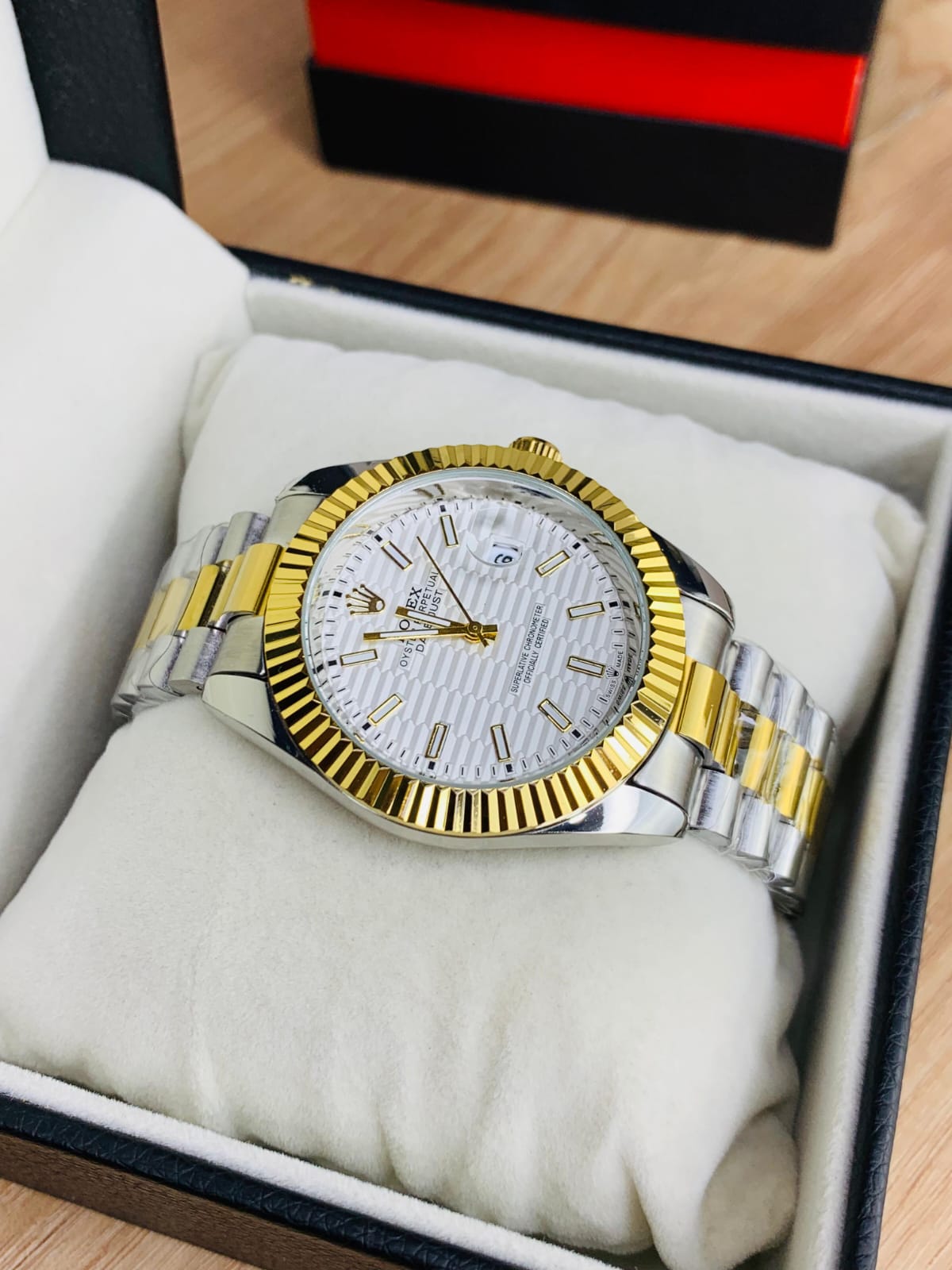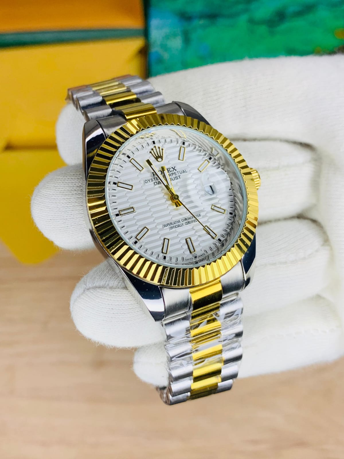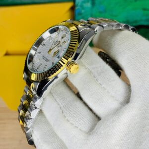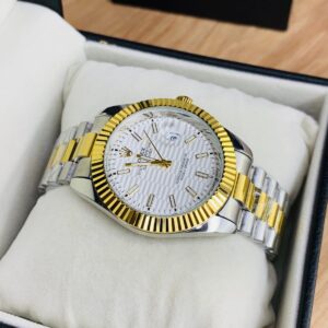 Date Just Model-Textured White Dial Twotone Golden Chain