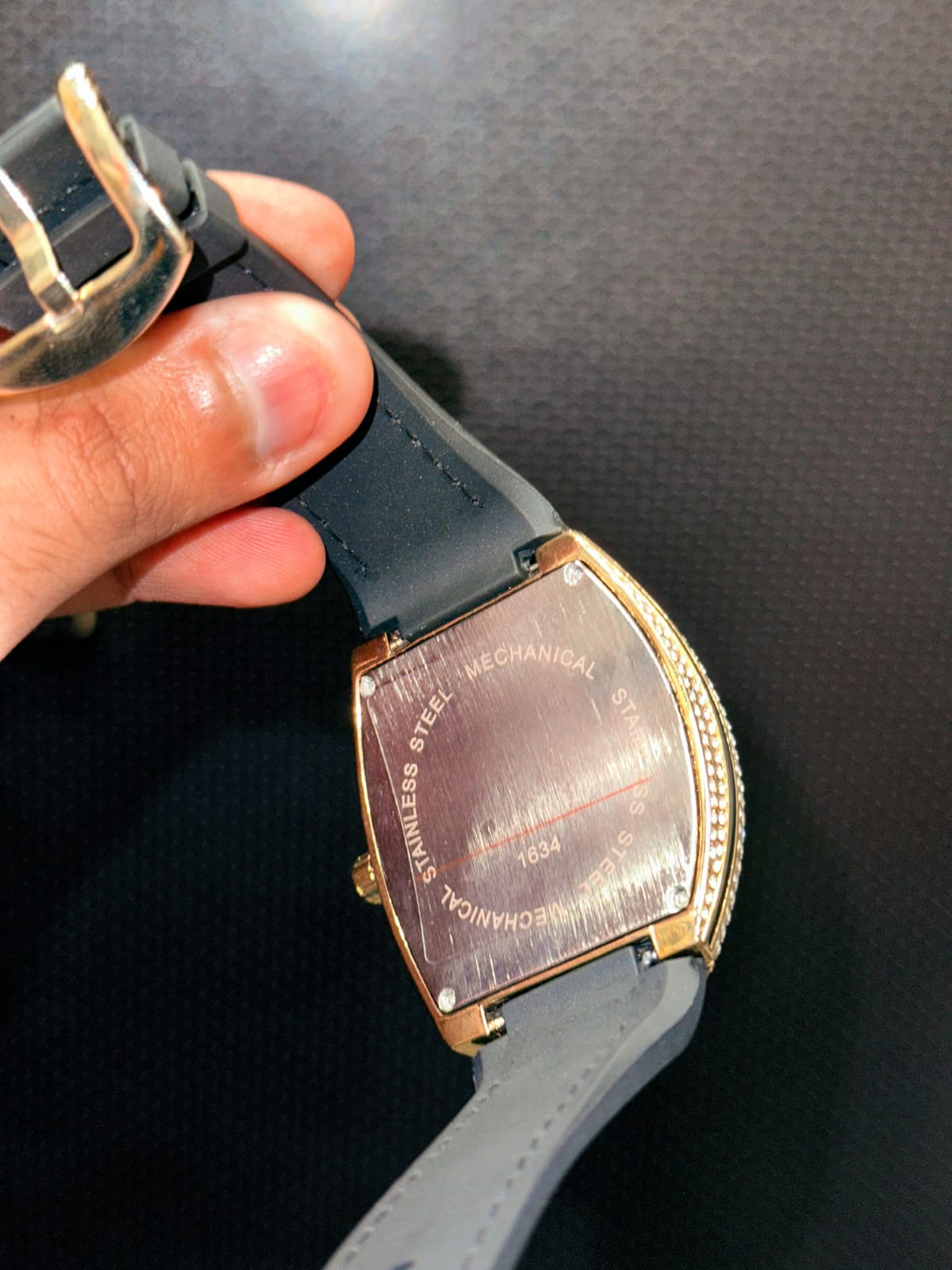 📷 Case: Gold-Tone Stainless Steel with Stone Detailing